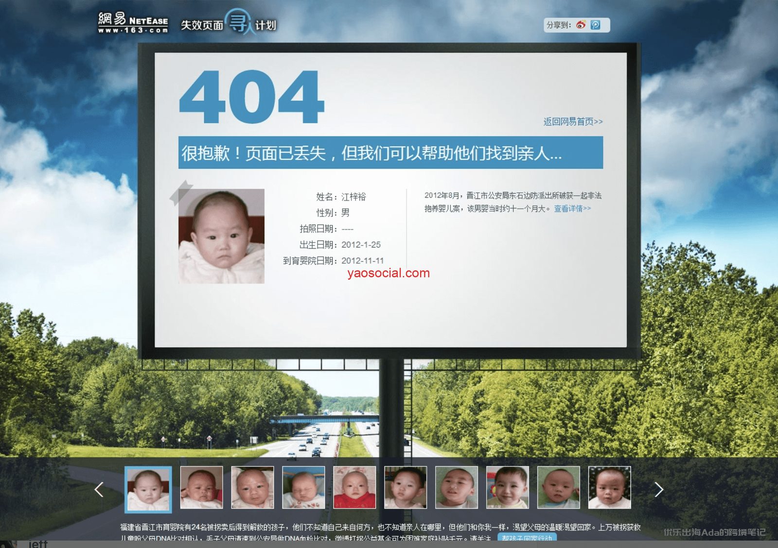 比如国内的网易,就采用很暖心的设计,把404页面设计成了寻人计划。