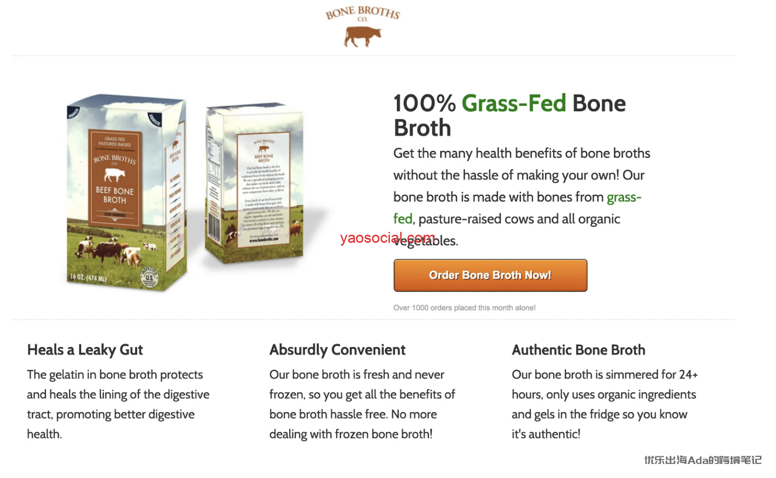 所以在之后的几个月内,他们不断找天然草料喂养的牛场,这是他们原材料的来源,找到包装的方式,和获取流量的方式,成就了现在的Kettle & fire bone Broth,目前也正欣欣向荣的发展。