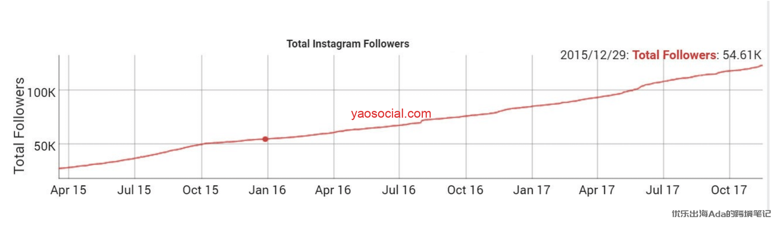 只需将目标网红的YouTube,Twitter或Instagram地址填到网站,然后查看结果图。如果它有一个相当缓和的增长斜率,如下图所示,那么你的目标网红很可能没有购买任何粉丝。