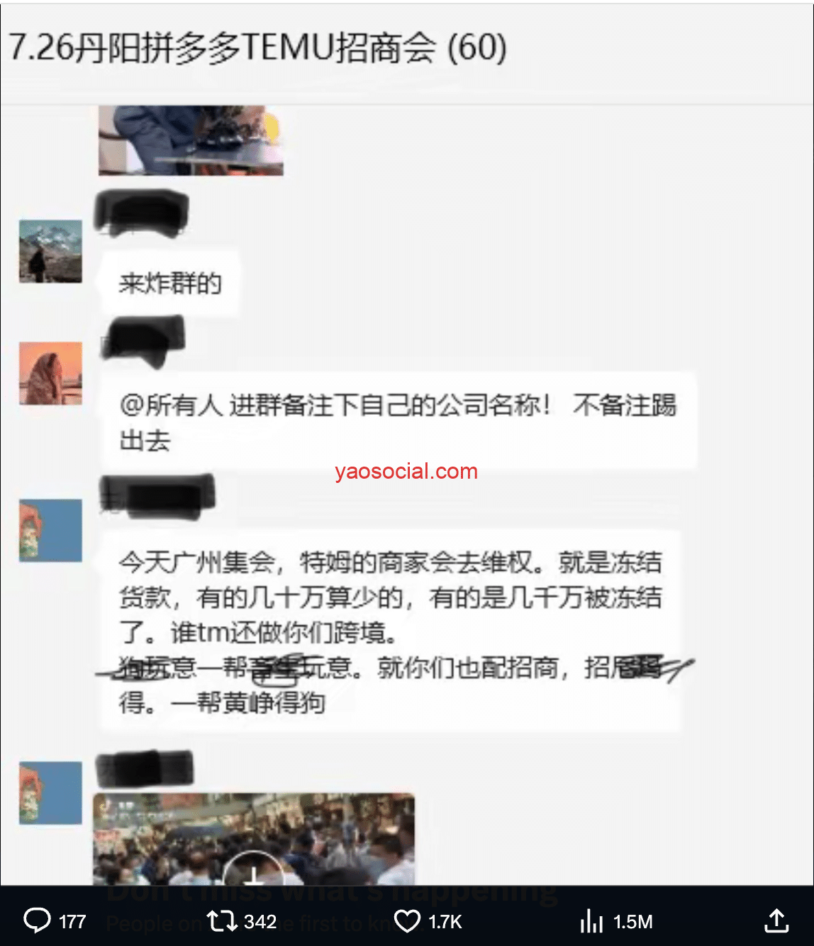 齐聚在广州奥园楼下的商家号称有200号人,但是要知道,入驻temu的商家有几十万呀。200号人只是商家总数中的九牛一毛。其他商家呢?是做temu有利润尚在,还是没被罚到让他们肉疼的地步?