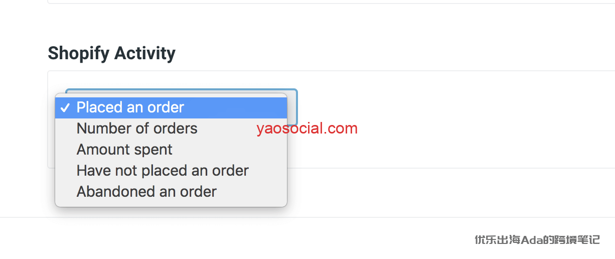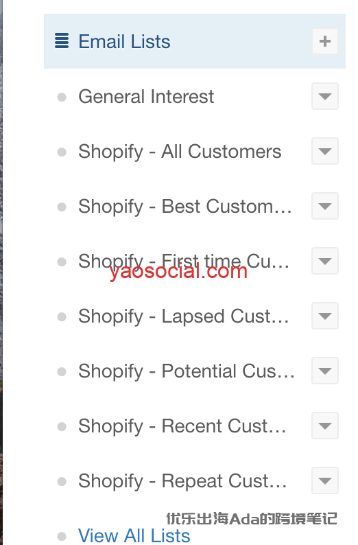 选择create custom segment, 从Shopify获取用户邮箱数据, 并创建自定列表。