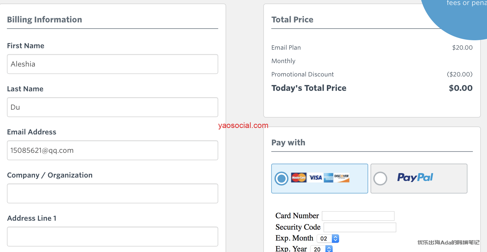 如果想要使用这个软件, 先去官网注册。首月免费,但是需要绑定你的信用卡,如果不想使用,那就在发了一封邮件之后再去申请退款。这是Constant Contact的硬性要求