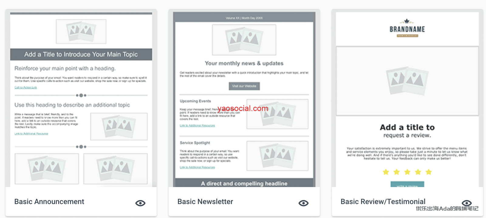 Constant Contact提供比较丰富的邮件模板, 不用懂代码也可以创建出好看的电子邮件。除了这种傻瓜式的空白模板之外。