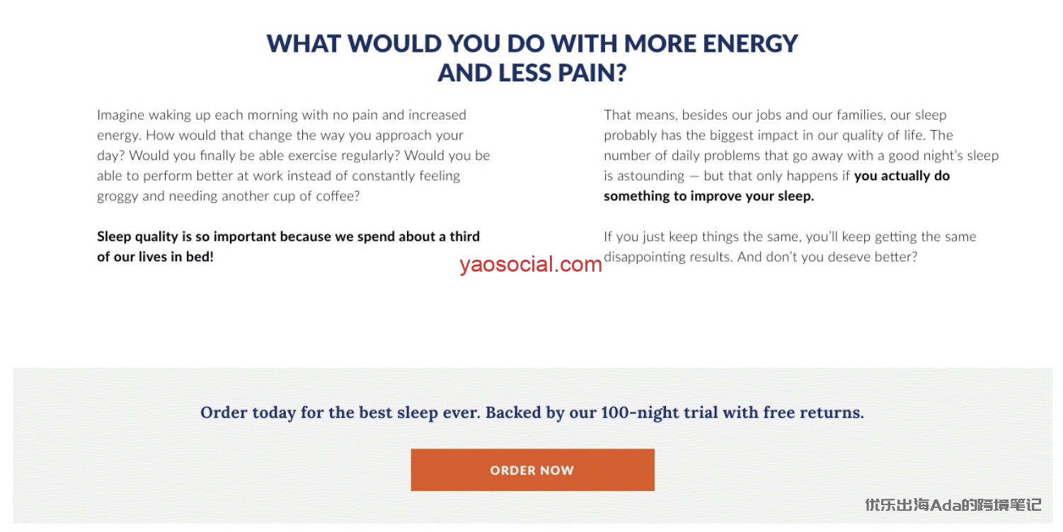 他们的文章非常注重内容,深挖产品可以给用户提供的实际好处,除了Amerisleep可以给用户带来更好的睡眠之外,更强调一个每晚的好睡眠会给生活带来多大的变化。