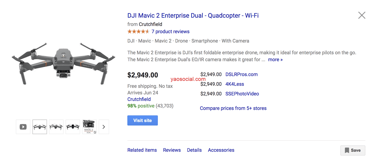那么在google shopping广告,同样也是如此。点击Google Shopping搜索结果中的产品后,系统会显示更多详细信息。 在产品信息上,可以出现两种类型的评级星:产品评级(上图为橙色)和卖家评级(上图为绿色)。如果您售卖的是有品质保证的品牌产品, 建议在商户中心账户中注册Google顾客评价计划。