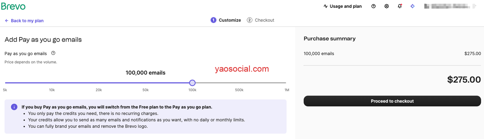 这里Brevo的优势就体现出来了,信用点按实际发送量扣费,不发不扣。你可以一次性购买10万封或者5万封邮件发送量预存在这里。让Automation和campaign的发送量都从这里面扣除。你可以一个月发五场 campaign,也可以三个月不发一次邮件,费用完全取决于你实际用了多少,而不是订阅占用几千联系人。