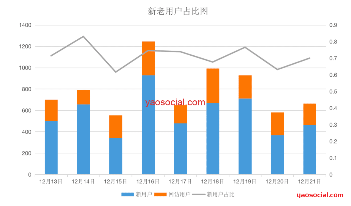 新用户数和新用户比例反映的是网站的推广能力,是之前渠道铺设带来的效果,它也是评估推广部门绩效的重要指标。