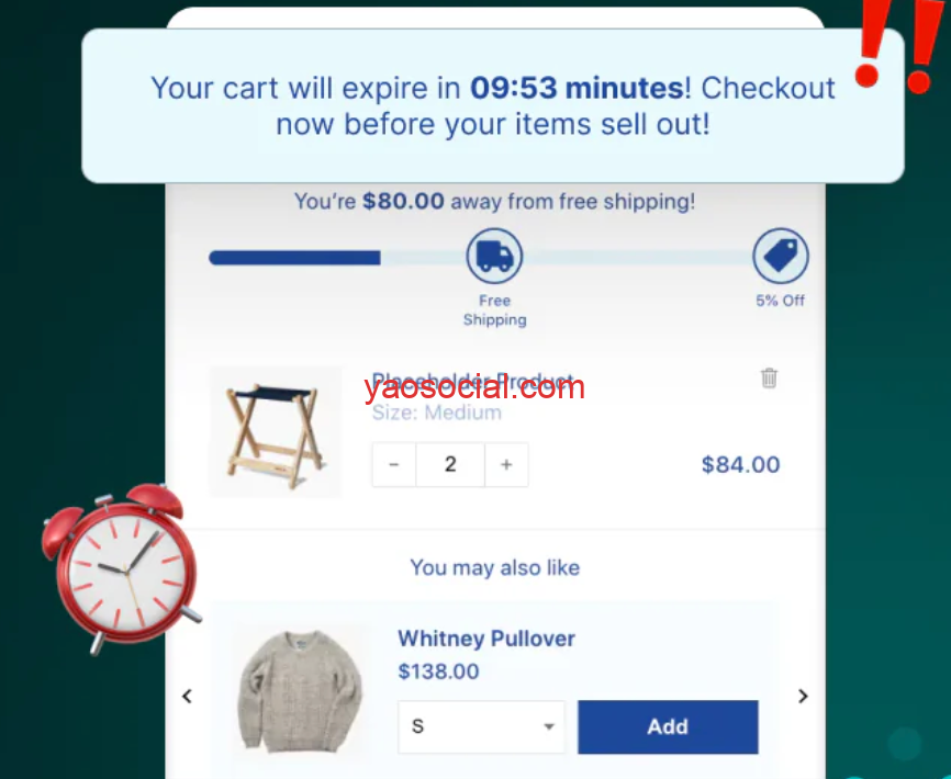 用户每一次添加到购物车,该工具就会弹窗,以进度条的方式告知用户获得了什么,距离下一次奖励还差多少。