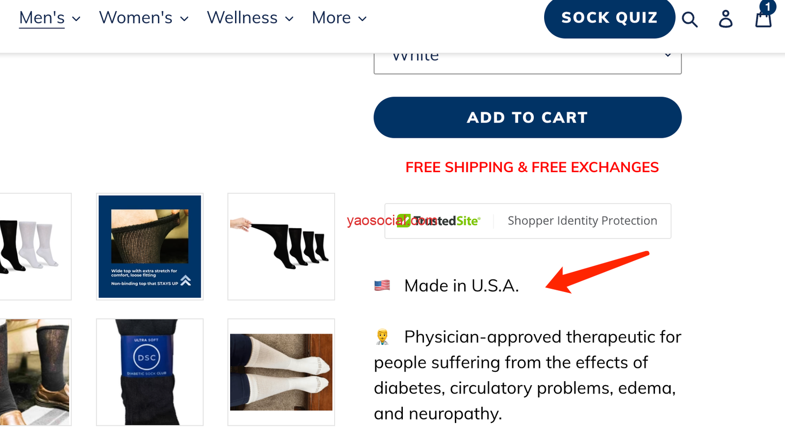 保护民族产业,爱国情怀这个点,也是一个可以很好利用的用户心理,之前在讲美国用户消费习惯时也提过这个点。做袜子网站的创始人很懂这个,所以在网站上无时不刻都在提醒用户:我们是Made IN US。