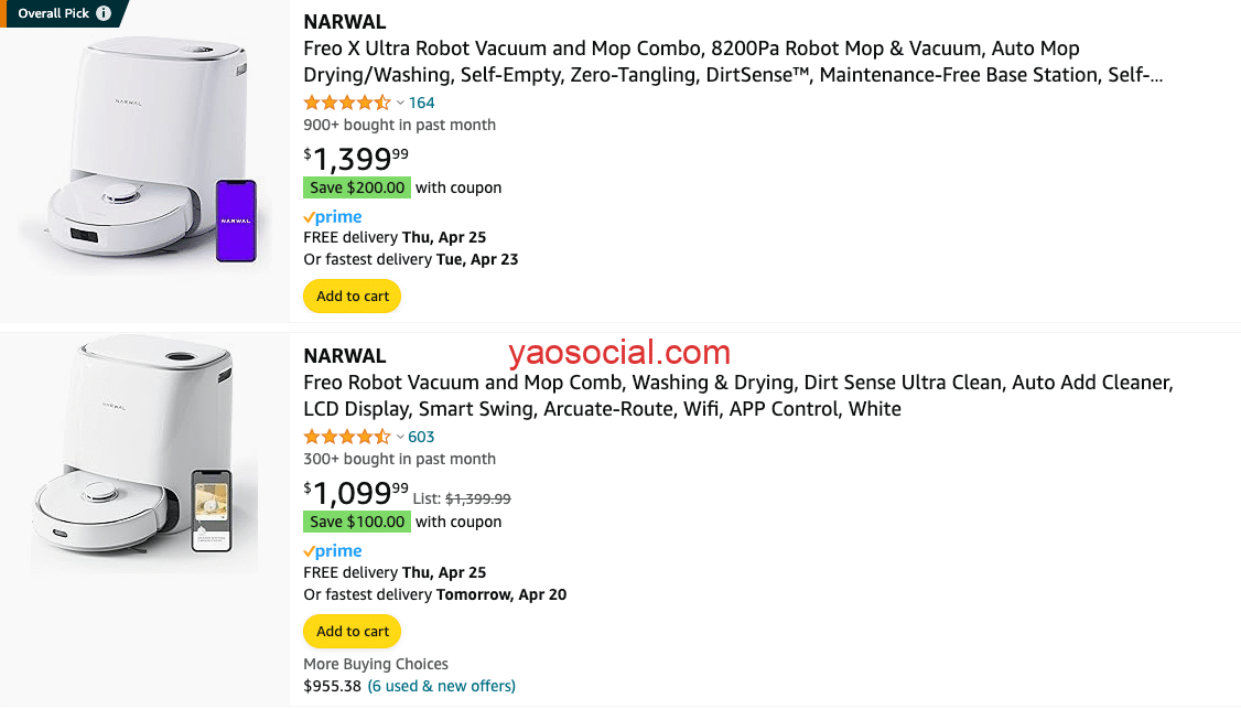 目前国内的京东上,云鲸仅有四款产品在售,而在海外市场上,云鲸只有两款产品在售。但是就这2款产品,就足以在亚马逊平台和独立站平台上秒杀刚刚提到的佼佼者追觅了 。