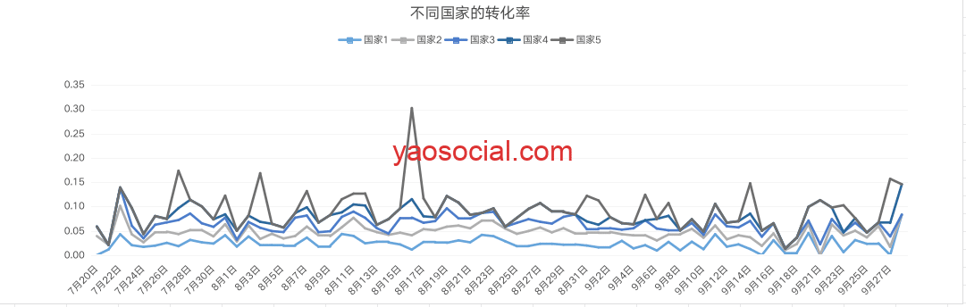 也可以关注转化率指标,看下网站在不同国画家的转化率,判断是否需要针对某个国家的访客及页面来进行优化