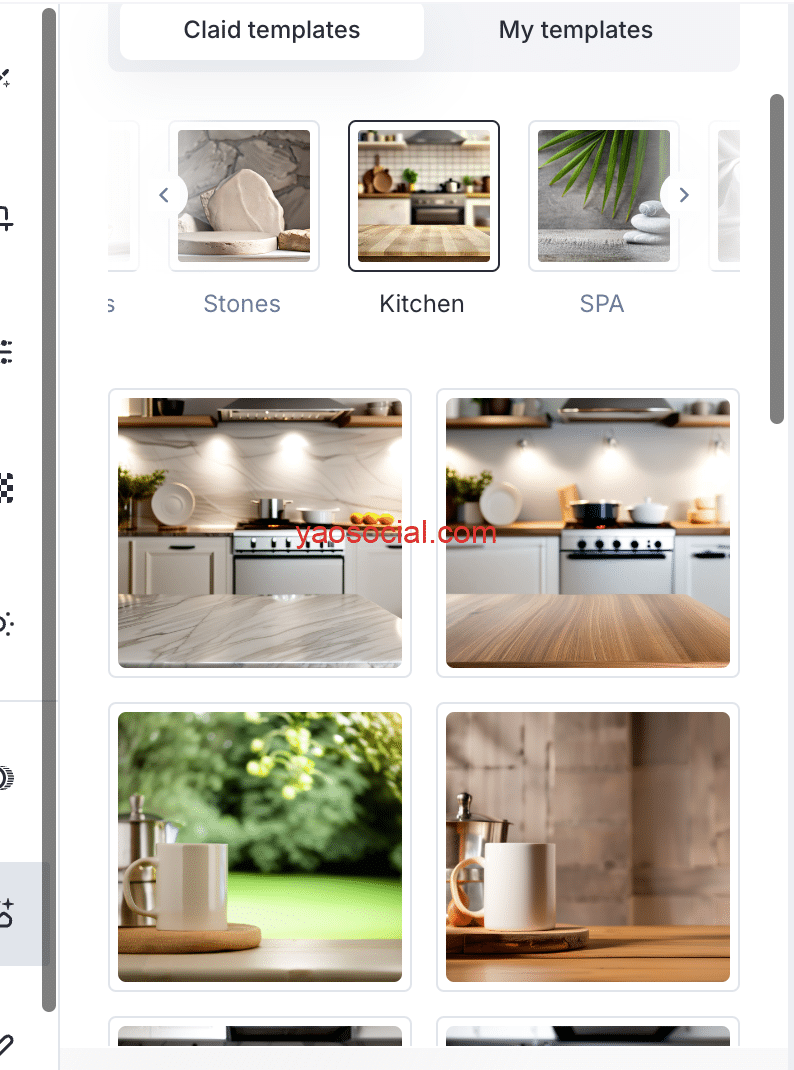 而mokker是一个偏傻瓜式的背景合成工具,虽然他们也支持对图片背景进行文字提示,但是他们独有的props可以让你自行的创建更多丰富的场景,就相当“拖拽型搭建场景”的感觉,会降低你对文字提示的依赖,光靠拖拽props你就可以生成更多场景了。虽然目前对每个品类的可用的模板数量不是很多,但是我相信随着时间的推移,他们也会增加的背景模板。从易用性上来说,mokker是比claid要简单入手一些。
