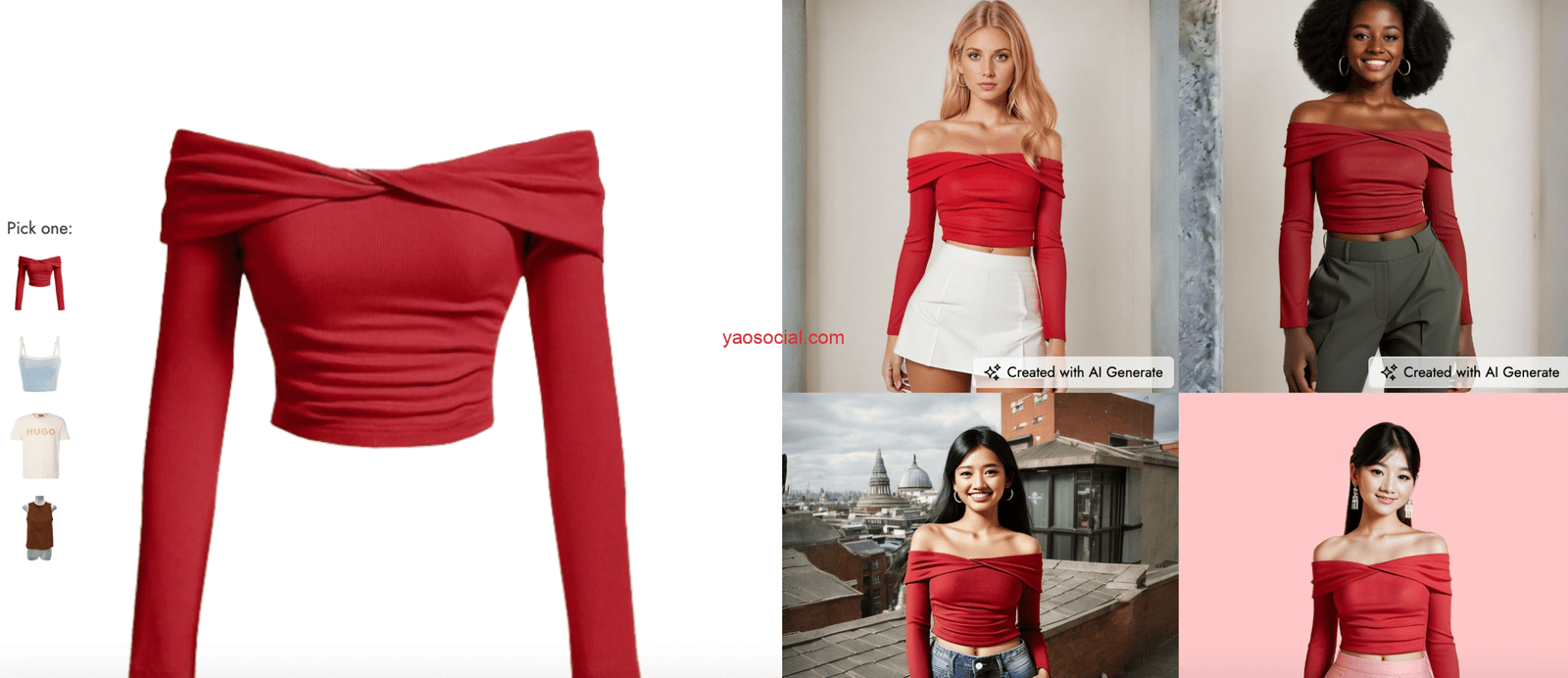 除了上面提到的这些,我们还测试过其他的AI图片,我们发现基本上所有的电商AI类图片都存在一个共同的问题,就是产品类型的限制。