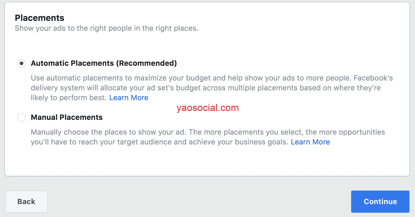 之前用广告组预算的时候, 我一般只选Instagram feed和Facebook feed这2个版位,但是当使用CBO的时候, 我会选择自动版位。