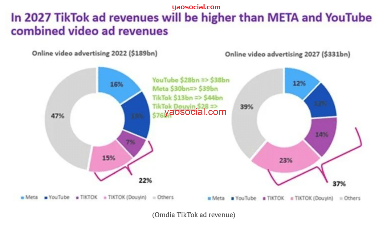 这篇新闻援引了海外的一篇文章,原文大概应该是这个: https://www.fiercevideo.com/advertising/2027-tiktok-video-ad-revenue-will-surpass-meta-and-youtube-combined-omdia