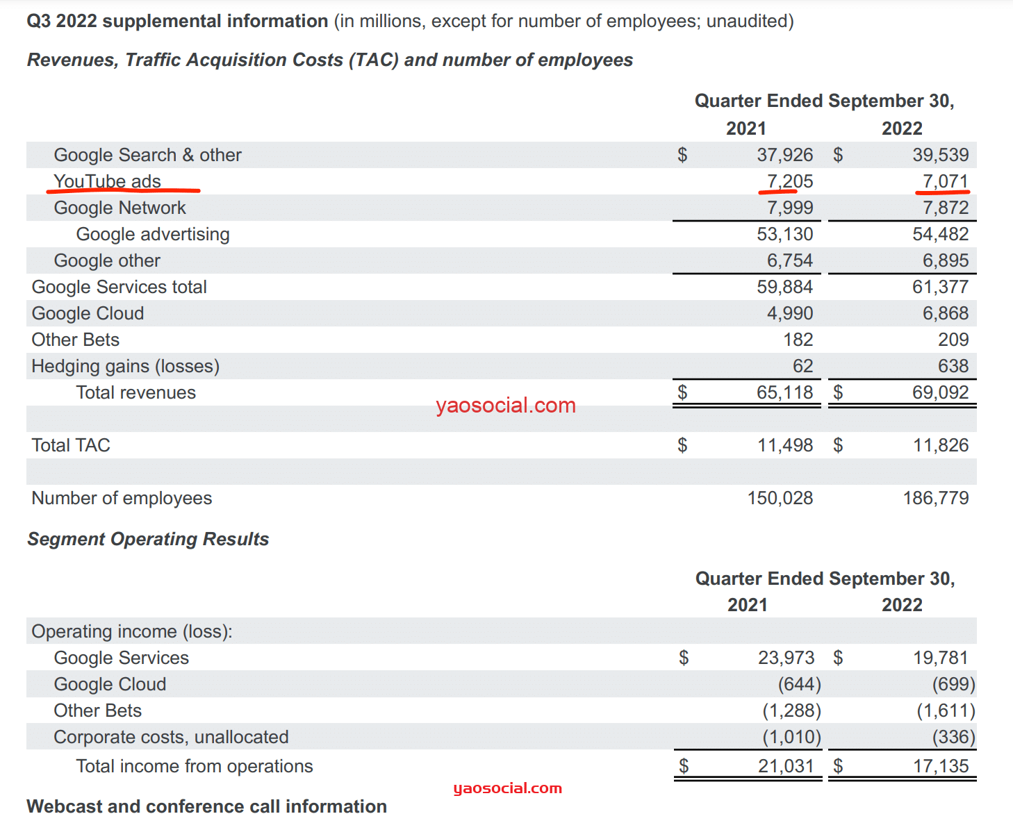 值得注意是,YouTube广告收入是$7.02billion, 比起2021年Q3的7.2 billion有所下降,比华尔街的预期低了1.7%。 这也是那篇新文章所援引的论据。