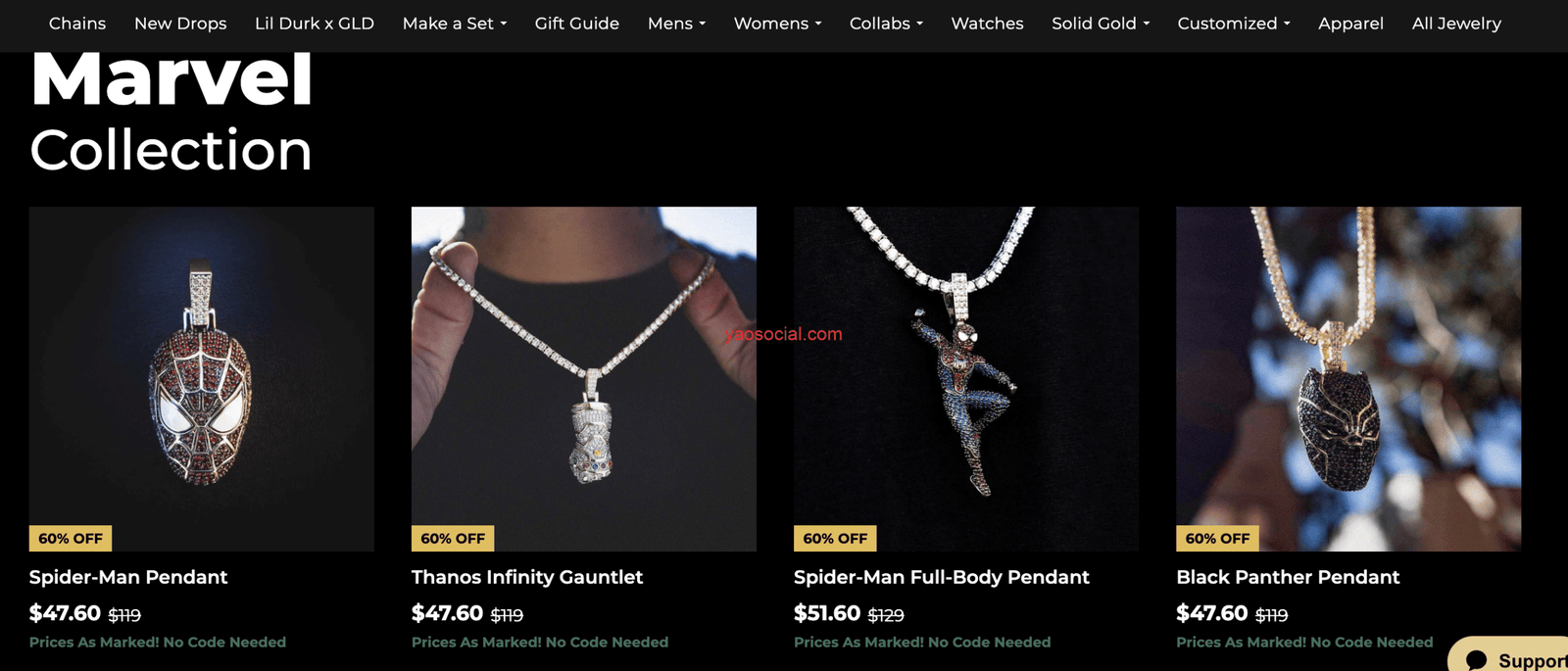GLD对漫威系列的骨折清仓处理就很好的辅助验证了这一点, 他们合作的五个联盟(对,漫威也算一个联盟)的产品系列中,只有漫威系列的产品在全线60% off。