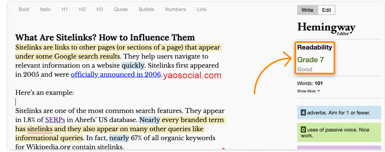 有一个工具叫做Hemingway,你可以用它来检查自己网站页面的阅读水平