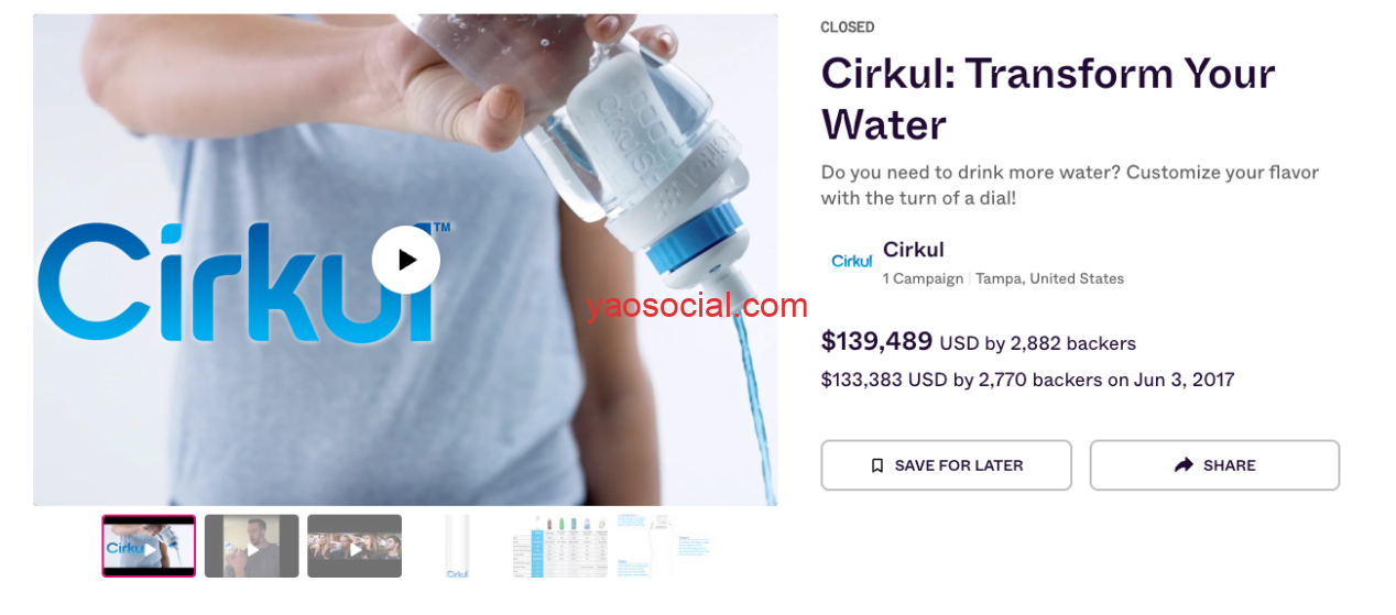 2017年Cirkul登陆了indiegogo,以接近14万美金拿到了2822个用户的支持,说实话,这样的一个众筹结果在当时只能算是中下水平;要是搁国内某些大公司的话,这样一个众筹金额就会被定性为“失败产品”,而惨遭公司股东的淘汰。
