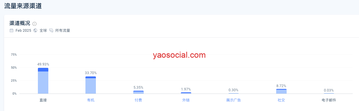 90% 以上的流量都归属在直接,自然搜索和社交媒体这种不要钱的流量来源上了。
