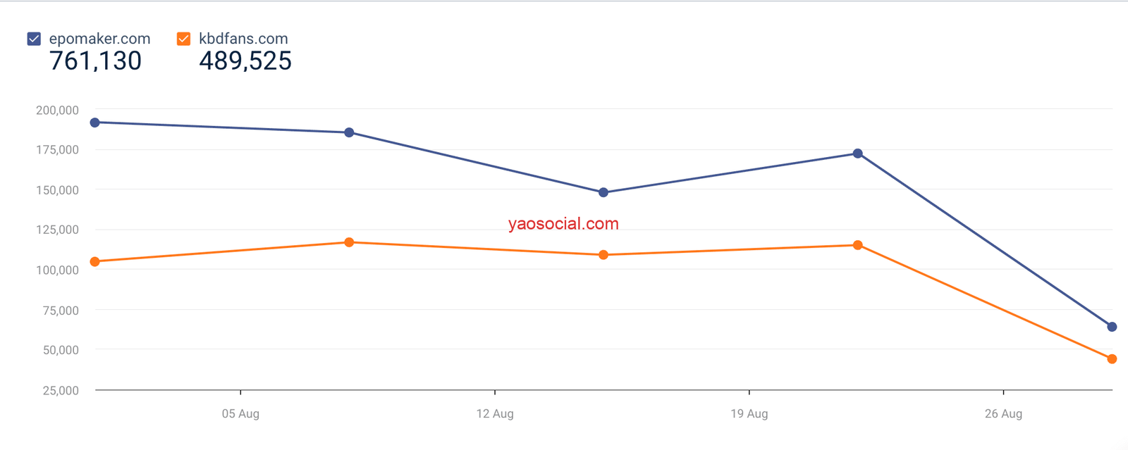 Kdbfans的域名注册于2016年,而epomaker的独立站则是注册于2019年,他俩目前在网站流量上的差异是这样。