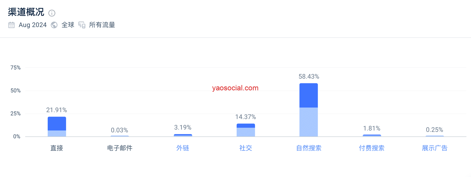 从流量来源渠道上看,对一个多SKU且运营了5年的品牌网站而言,自然搜索+直接访问的流量占比达到了80%,是一个常规且不错的流量占比了
