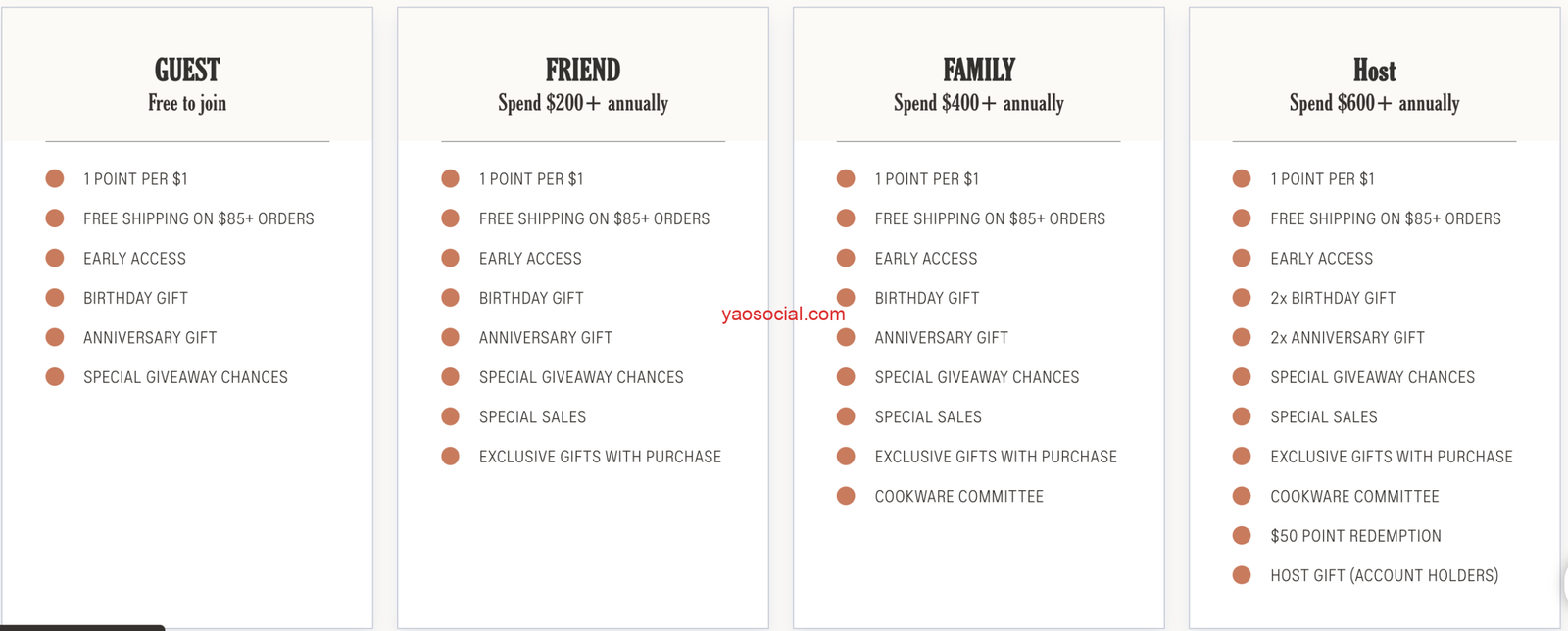 这个就有中国人做营销的感觉了,根据年消费额度给予不同的礼品和福利。当然,积分也是要通过一些任务来获取的。我之前写过一个介绍积分系统的插件,感兴趣的同学可以点击查看下。