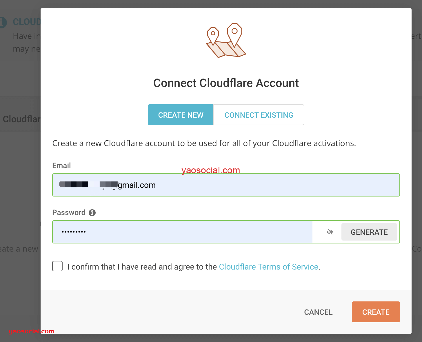 下一步后,会让你创建一个CDN账户和密码。记得勾选 I confirm that I have read and agree等xxx,然后点击create即可。