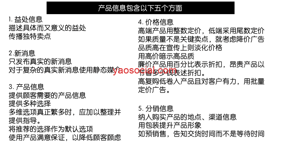 首先是信息,产品信息有哪些? 奥格威早就在书里讲过: