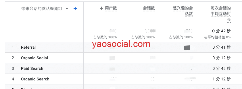 在电商行业,我们最常用的就是第四阶段的“加购”这个数据啦。如果没有产生加购,你可以在GA里查看每次会话的平均互动时长来判断流量的质量,比如在下方的截图中,organic social(其实是fb广告)的平均互动时长只有12秒,是所有渠道当中最短的。