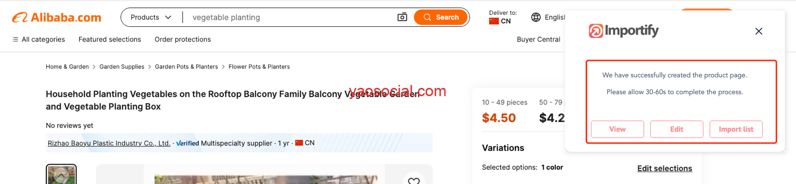 插件安装完毕后 你再回到阿里巴巴上的产品详情页,就会在页面的左边看到一个这样的按钮