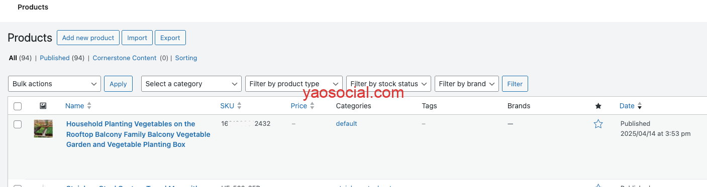 这个时候,我们回到wordpress的网站后台, 在Product下方,你就会看到这个产品信息了。