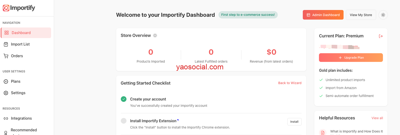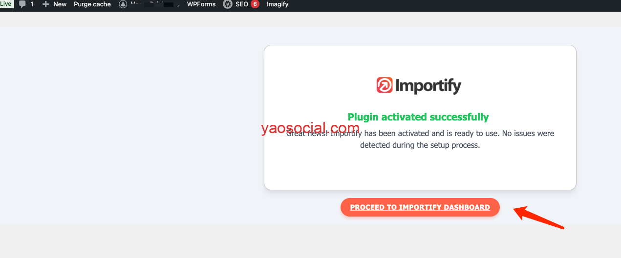 在后台找到插件入口,进入到插件后,点击proceed to Importify dashboard