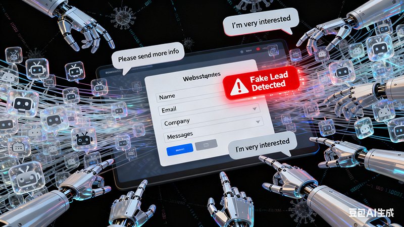 除了询盘内容信息有问题外,在广告上转化率数据上也会出现异常。平时你的投放的线索广告转化率(表单提交次数/广告点击次数)可能是5-10%,但是这种会去到50%左右
