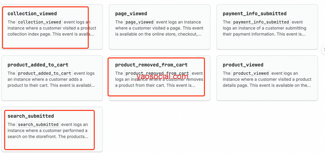 如果你还想统计分类页查看数量,从购物车移出数量和搜索次数。可以让你们公司的技术人员,查看shopify的standard events。将shopify的事件名称和google的标准事件名称对应起来,传输到GTM那边。毕竟2个平台对于事件的命名,在用词上有些不同。比如shopify的collection_viewed, 在google里称作item_list_viewed