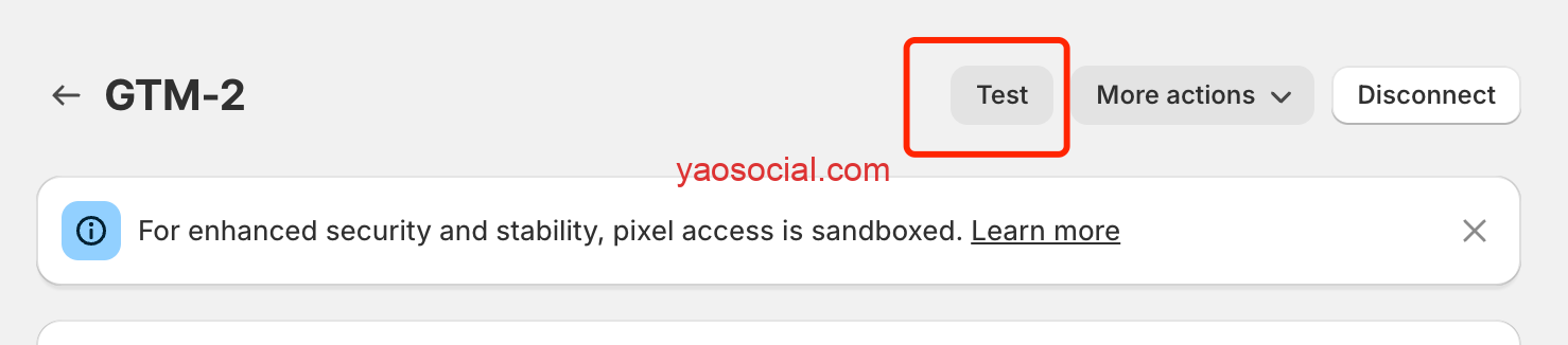设置完毕后, 可以使用“test”功能,在新打开的网站页面上做各种加购、结账的操作,看pxiel是否正确上报。
