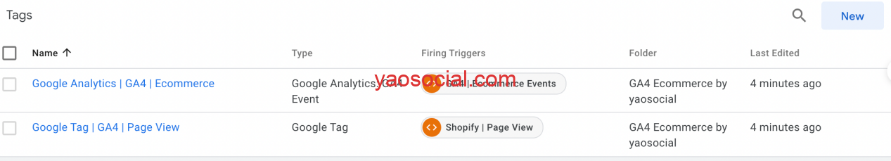 请注意,这里是标准的Tag事件, 你依旧需要为这purchase、add to cart,view cart等你需要特别追踪关注的事件去新增Tag。