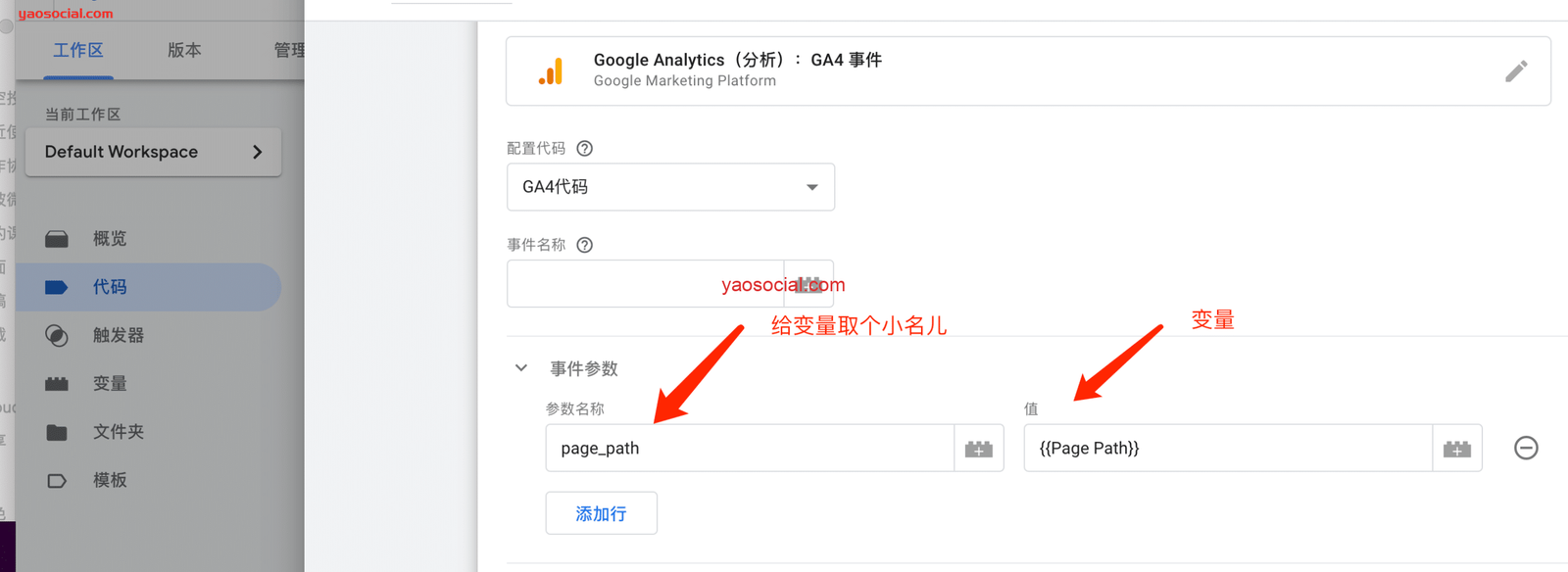 点击其中的一个事件,在右侧参数名称中,你就可以选择不同的参数,比如page path和其他参数