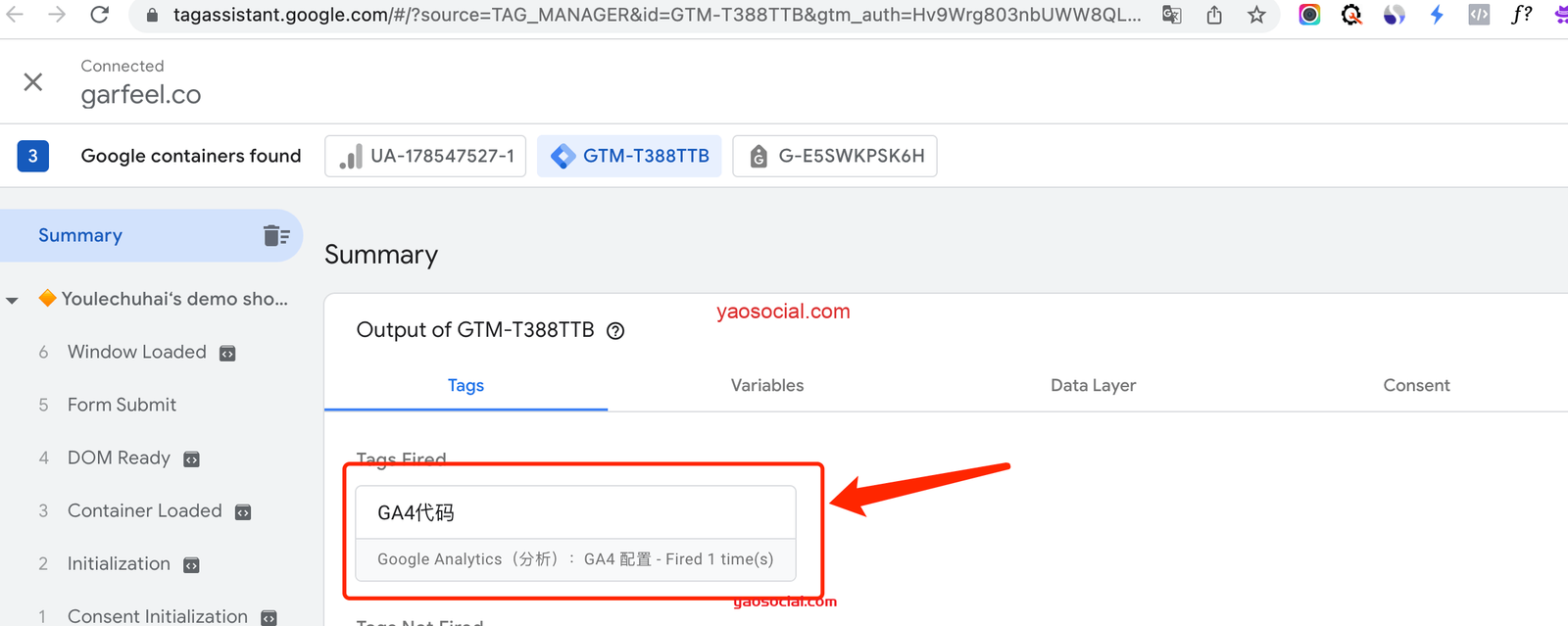 在GTM里配置完这些事件后,一定要在tag assistant里调试通过,确保你的Tag都可以在调试模式下被激活。
