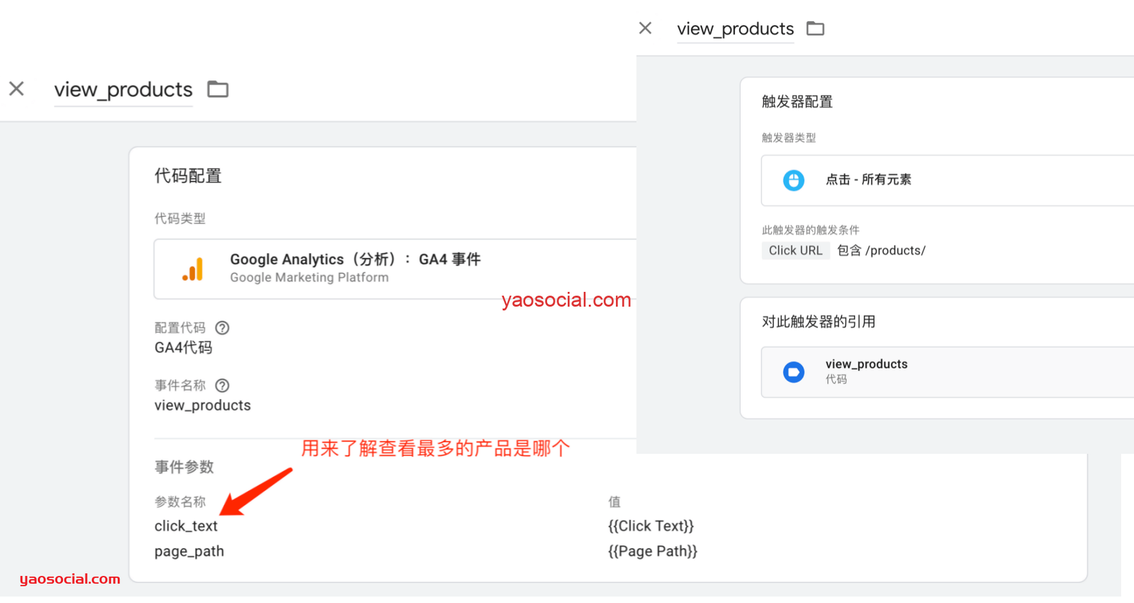 大部分事件在GTM里设置,你不懂代码也可以完成配置;而有些变量则需要使用datalayer的代码在后台push,比如我想记录产品名称和产品分类的变量,这就可能就需要程序员介入了。