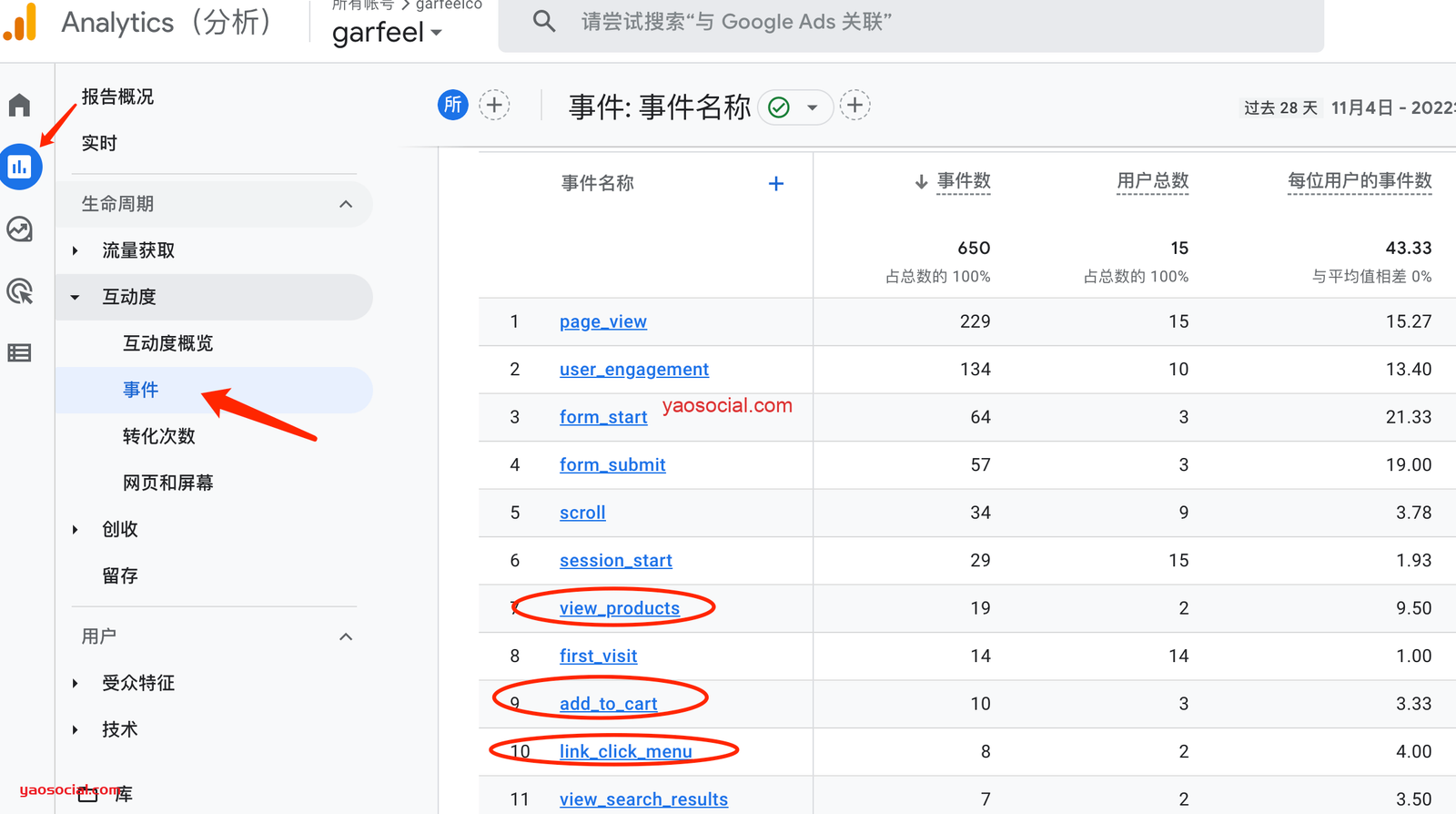 如下图所示,红框里的内容就是我们设置的事件,已经在正常的统计数据了。