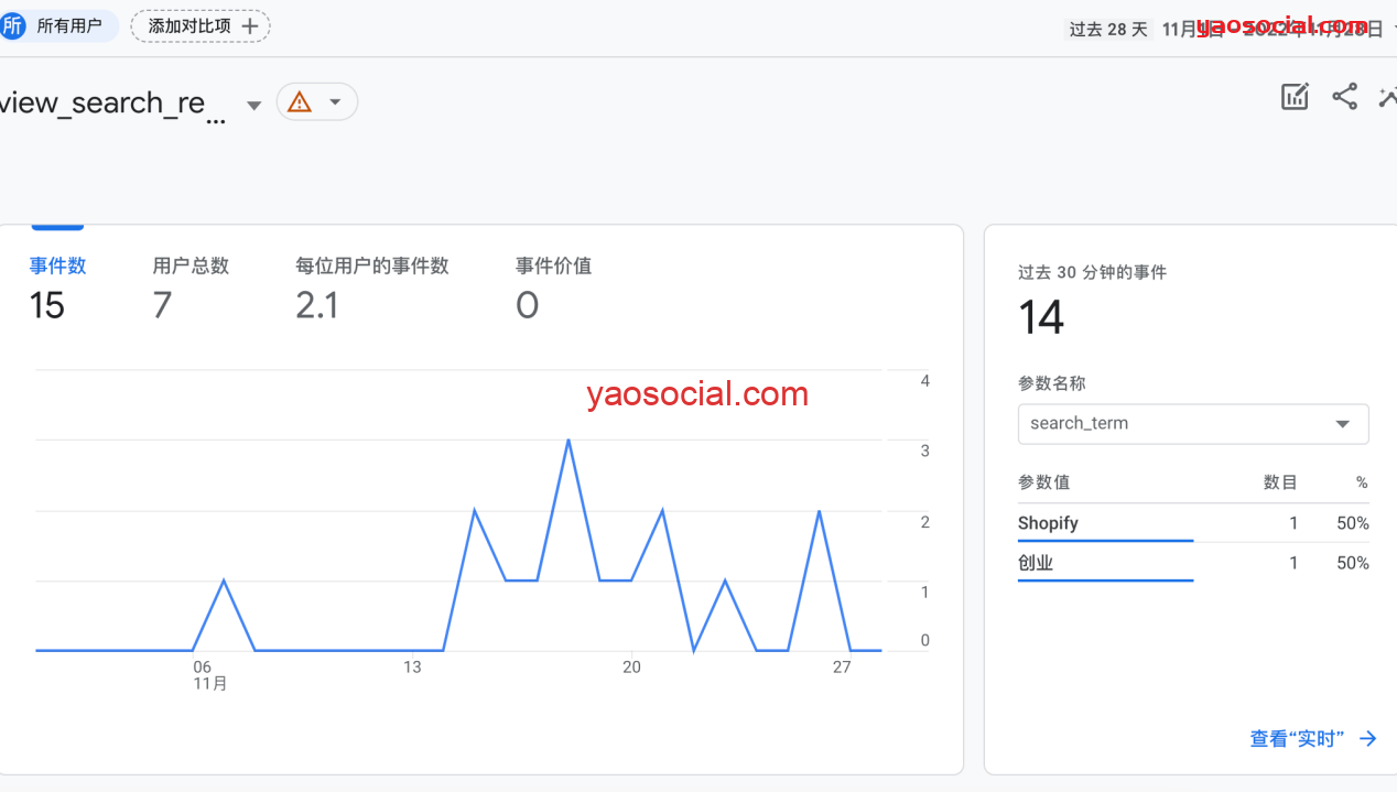 如果你查看的是搜索行为,还可以通过切换参数名称“search_term”来看用户在网站上都搜了些什么。