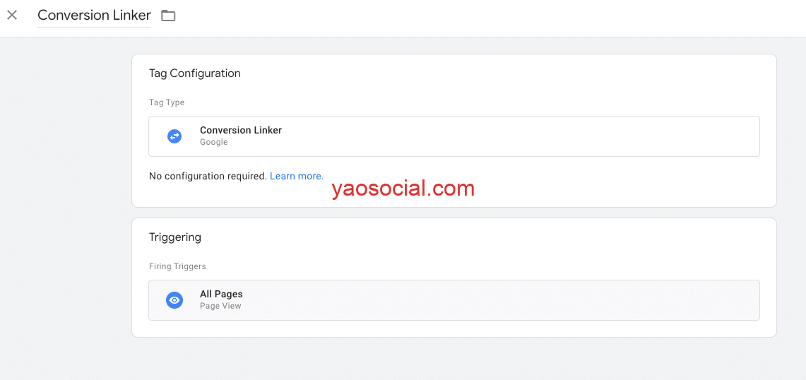 最后,创建 Coversion Linker。 Conversion linker的主要作用是为了提升谷歌广告收集点击数据。