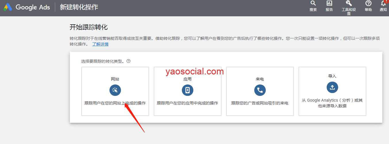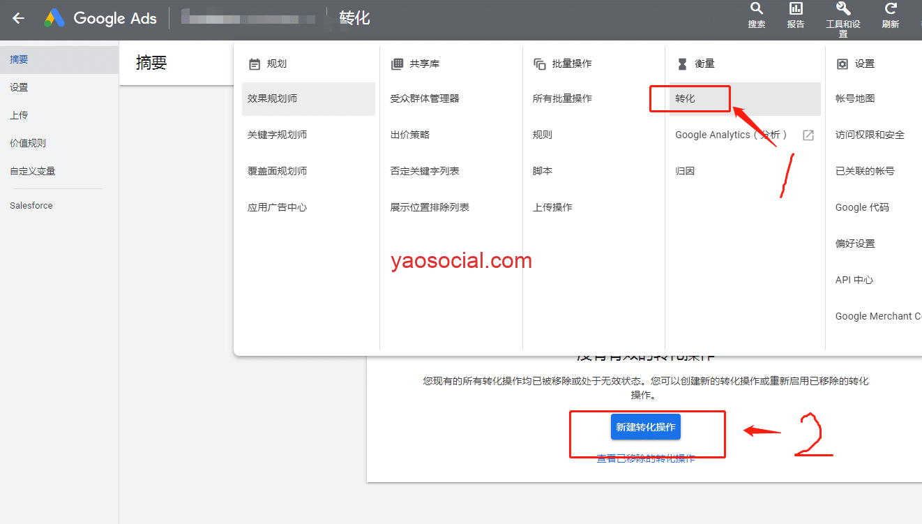 在adwords后台,点击工具-设置-转化。然后新建转化