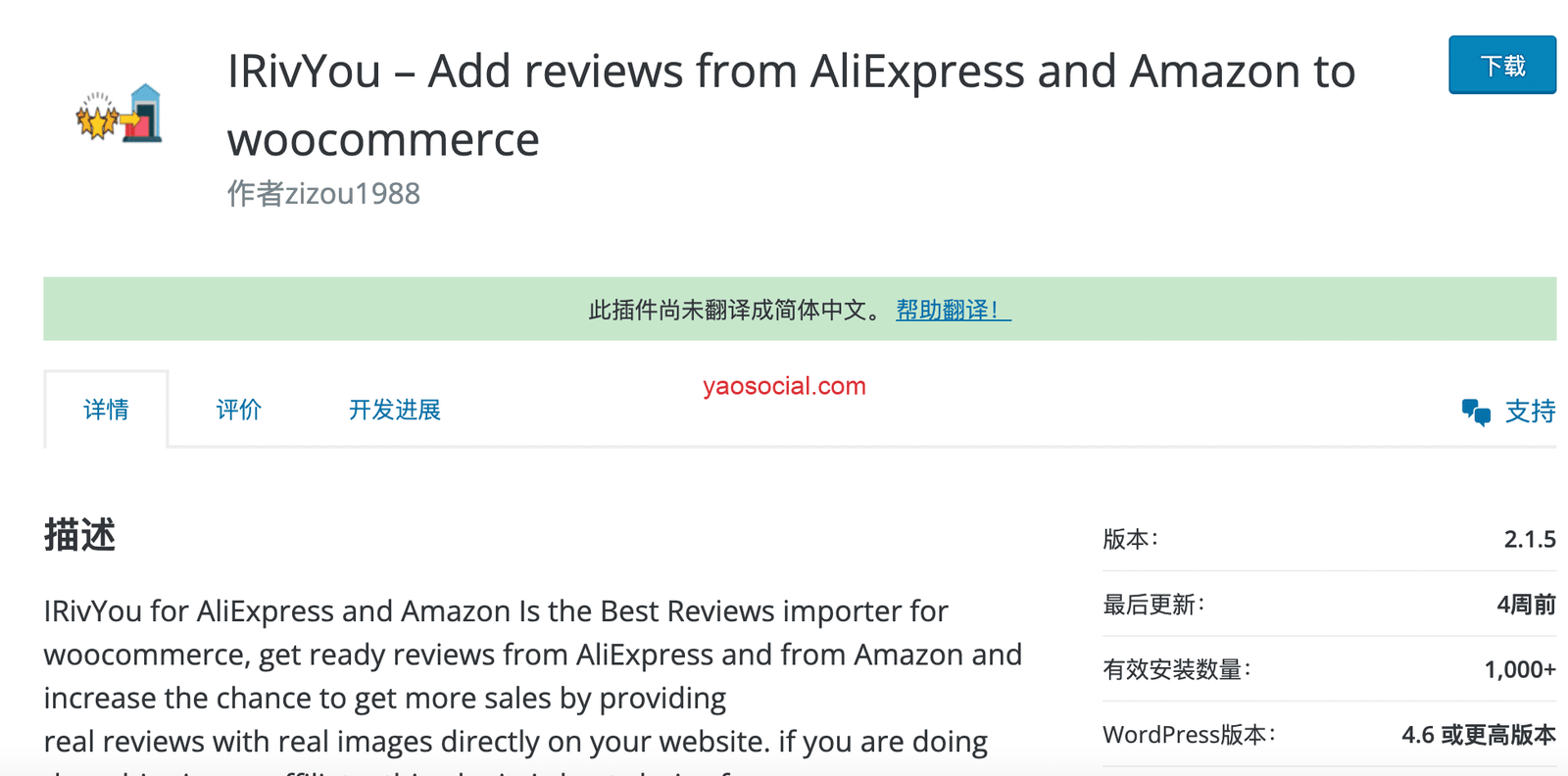最后在英文搜索的帮助下,总算找到了一个可以用的亚马逊速卖通评论导入插件- IRivYou。这个插件只能用作外部评论的导入,不能去自行编写或提供更多功能,它只是把电商平台上已有的评论(文字+图片)一起导入到woocomerce的product review下。