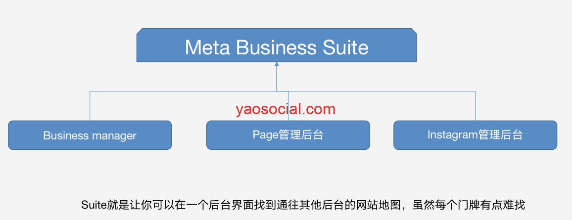 所以我们现在看到的Meta Business Suite更像是一个缝合怪。缝合怪的最大特点是什么?那就是你得先有肢体,才能缝合,对吧?所以,如果你想使用完整的Meta Business Suite功能,就必须先创建好Business Manager、Page、Instagram账户。