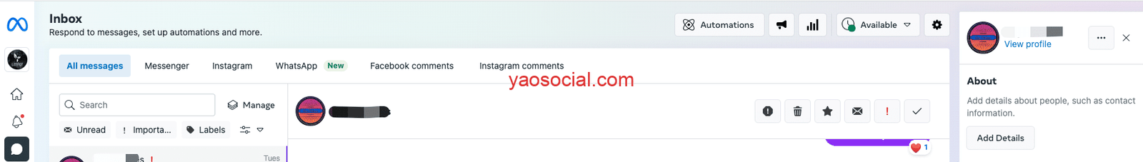Inbox:收件箱,用户给你发的Facebook message, WhatsApp消息,Instagram 私聊等都在这里集中看。