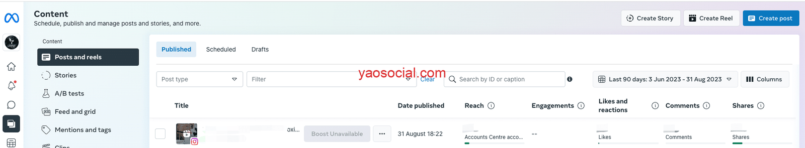Content:统一在一个地方发布帖子、reels、story等各种形式的内容。 当然也包含帖子的基本数据展示,如互动,点赞,分享等。