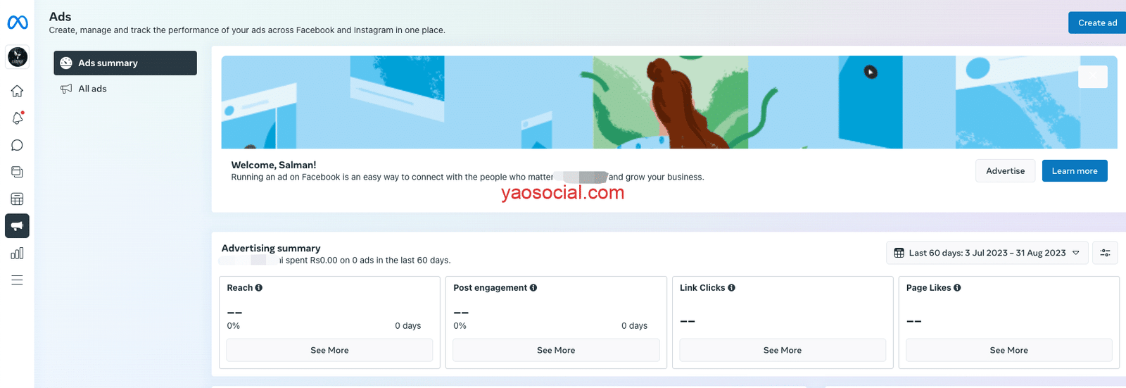 Ads: 更像是一个campaign dashboard的数据面板,当然也有创建广告的快捷按钮,但是这里的界面和通过ads manager创建广告的界面有些不太一样。