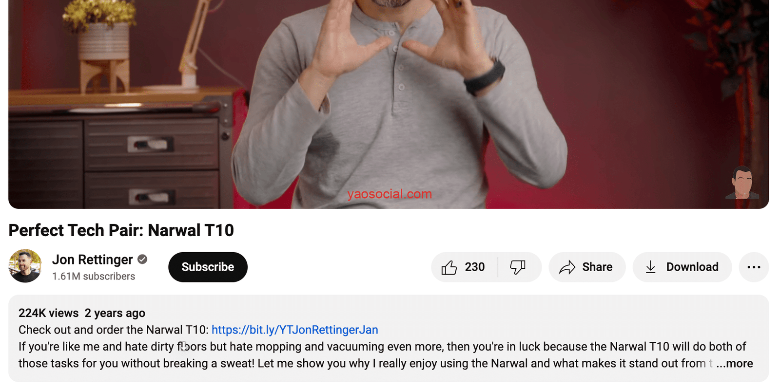 当你合作了一个百万级别的youtuber后,后面的网红合作开发也会容易很多。所以你看,下面这个百万网红的视频就发布于2022年1月。当然这种级别的网红去合作一个dedicated视频,而且还是电子消费类产品,这费用可想而知!